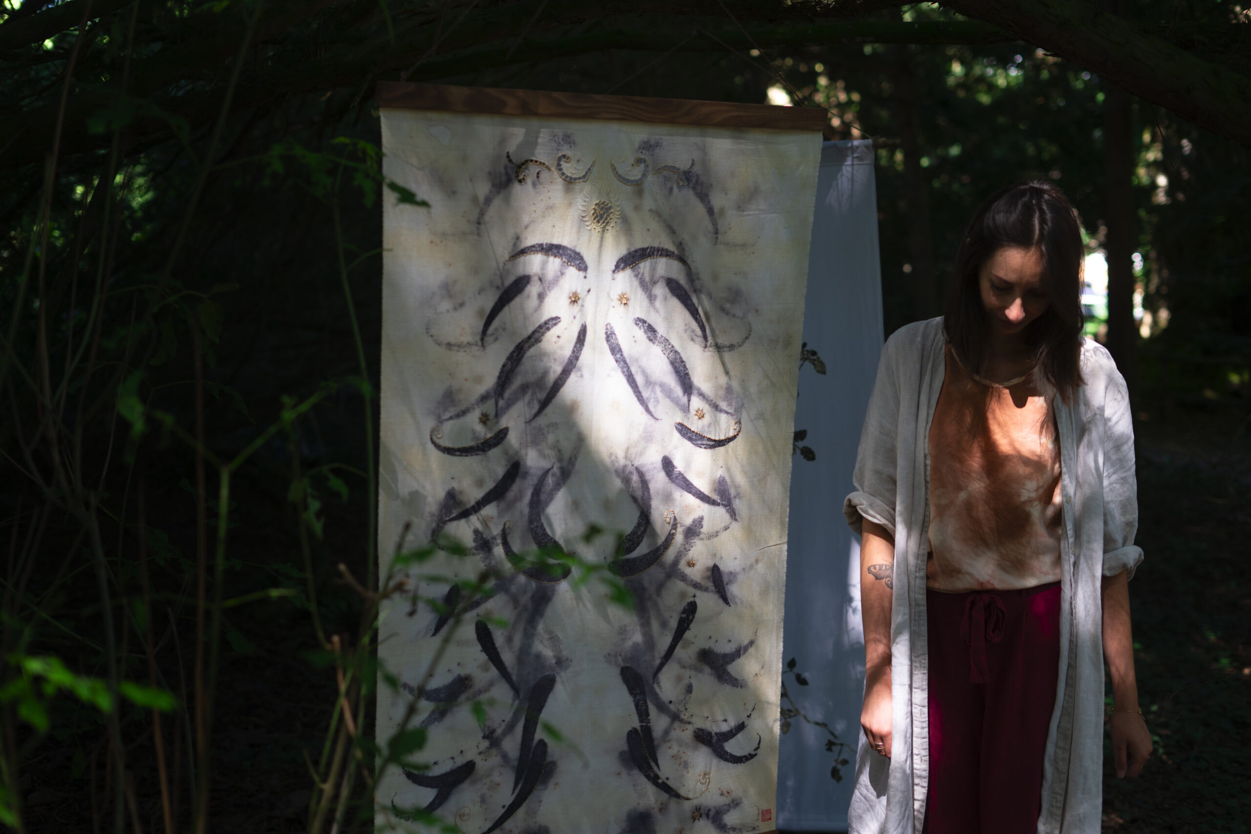 Après un pèlerinage au Japon en 2019, je me forme à l’écologie profonde et à la Voie du Shinrin Yoku (bains de forêt) afin de faciliter des séances de reconnexion au Vivant. Le végétal prend une place essentielle dans mon quotidien. C’est avec les plantes que j’aligne alors mon esprit – mon coeur – mes mains. Je me remets à explorer la création dans une démarche éco-sensible et à faible impact environnemental. En 2022, j’ai l’opportunité de rejoindre le centre d’art et nature de l’Espace Enchanté en tant qu’artiste résidente.